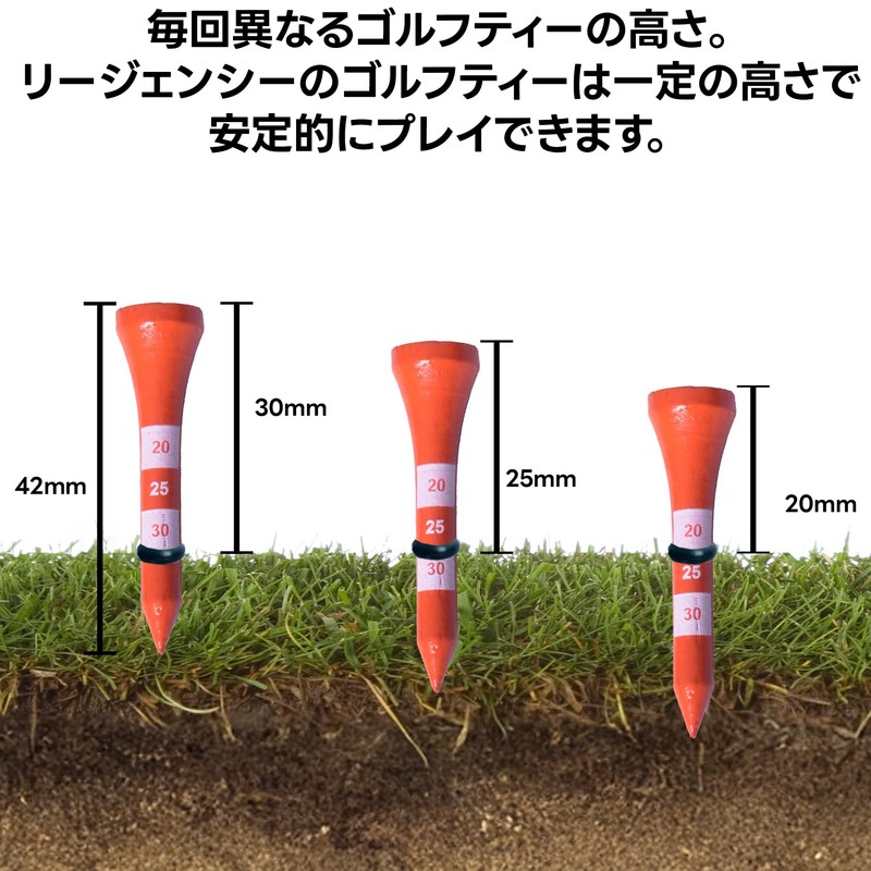 - 【ゴムリング付きで高さ調節が簡単】 : 芝生に埋もれて目盛りが見えなくても大丈夫!ゴムリングを使えば、ロングティー(ロング ゴルフティー)でも正確な高さをキープ。 ドライバーショット時の衝撃にも強く、しっかりとティーアップできます。