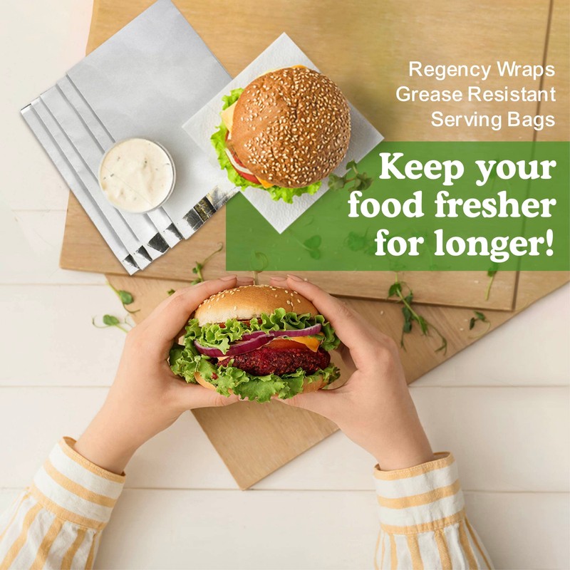 Regency Wraps Grease Resistant Snack Serving Bags, Foil Lined, Pack of 100 For Burgers, Sandwiches, Panini's, Pitas, Insulated to Keep food Warm