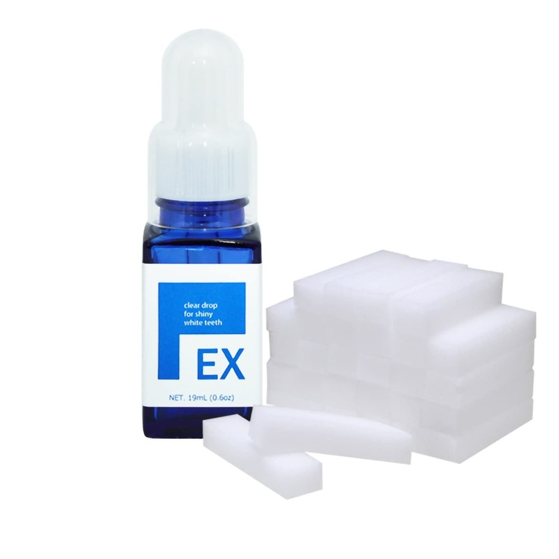 Set Contents (1) Polylin White EX (Quasi Drug) Contents: 0.7 fl oz (19 ml) (Includes a glass bottle with eyedropper, shrink film packaging), (2) 30 sponge toothbrushes (in transparent bag) Material: Melamine sponge