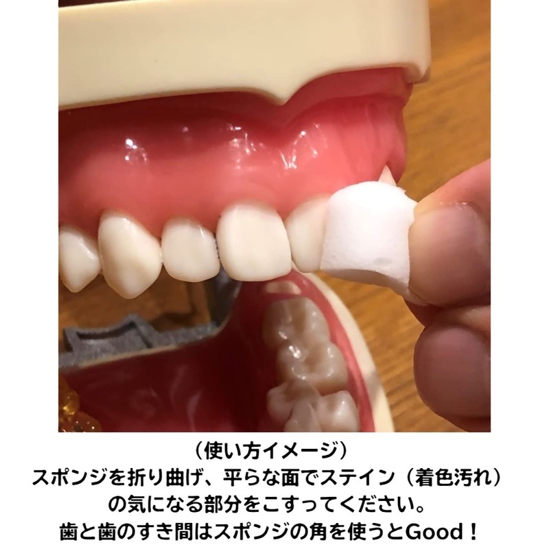 - (Soft Sponge for Stain Off without Scratching Stains Off) Sponge Toothbrush: Special surface processed sponge toothbrush is a special sponge for the teeth that reaches small uneven surfaces of the teeth. Polish the surface of your teeth with Polyphosphoric White EX. (The sponge is soft, so it is not easy to damage your teeth.)