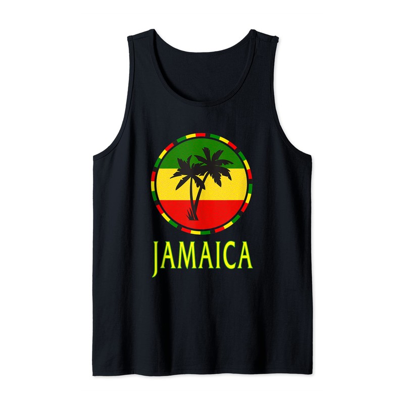 Reggae Flag Colors Coconut Palm Trees Jamaican Vibe Tank Top