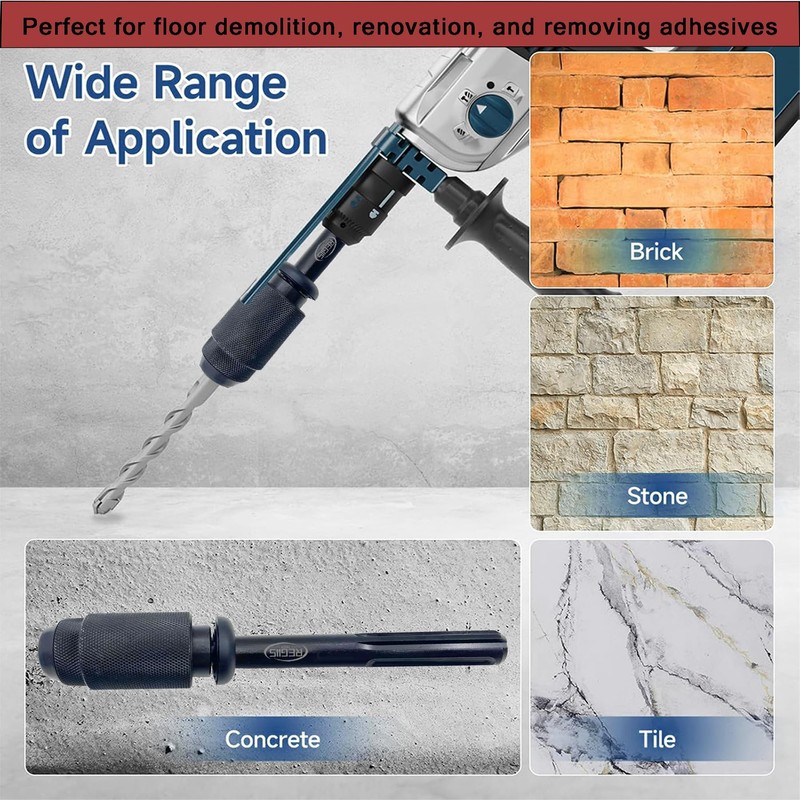 • 【Wide Application】Using this adapter allows you to use SDS PLUS drill bits directly for lighter works while maintaining compatibility with SDS-MAX bits for heavier concrete operations, which expands the functionality of your electric hammer drill and ensures that your drill bit set can handle a wider range of work.