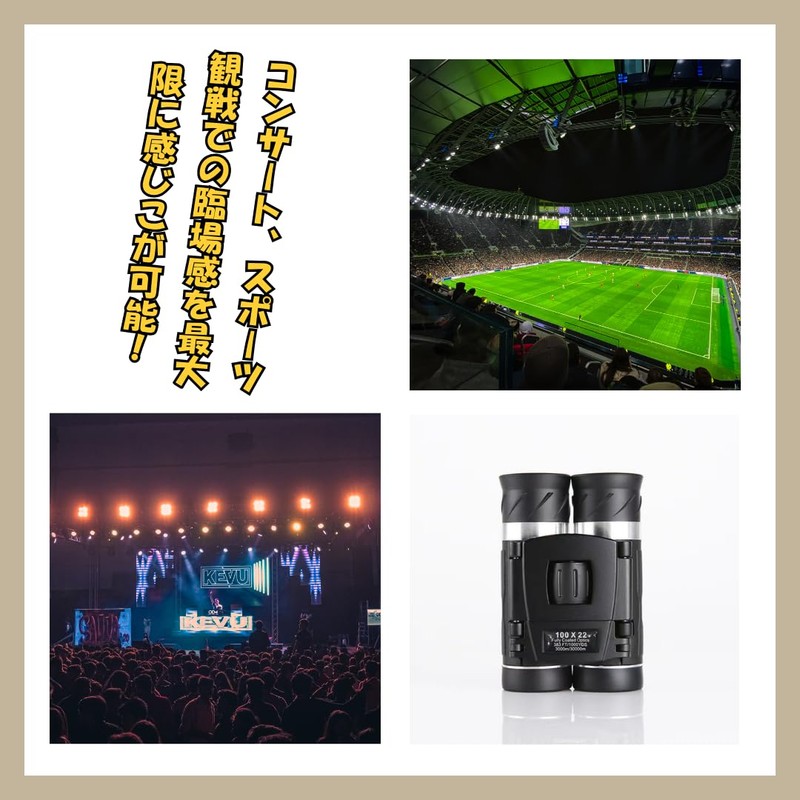 - Experience the immersive experience: With a 10x magnification, you can see objects far away as it is in front of you. This allows you to maximize the immersive experience in live concerts and sports games, giving you the experience of being together in the spot