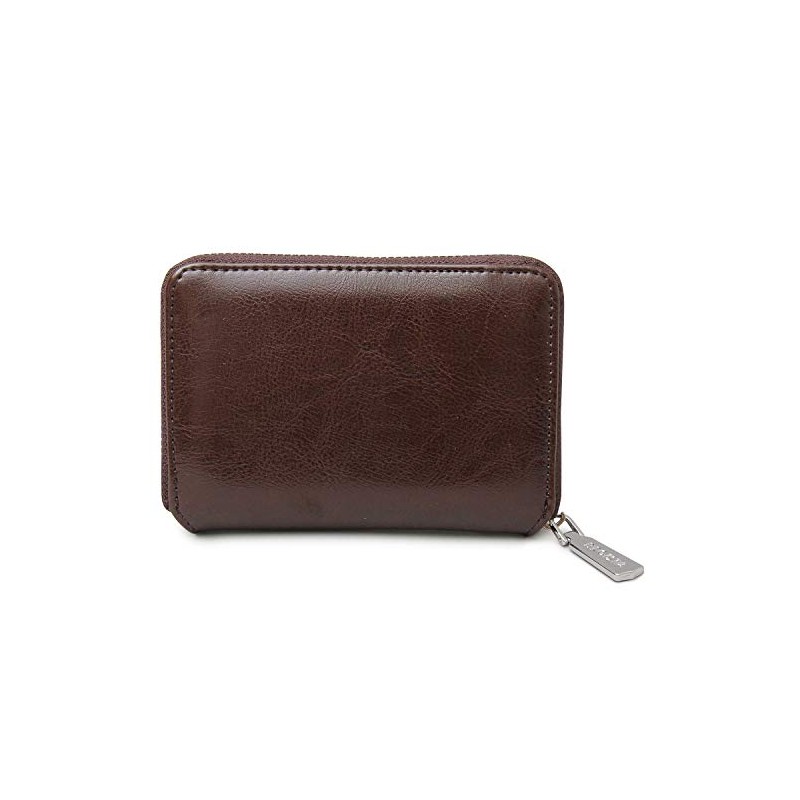 Register Leather Bilford Wallet with Round Zipper, Bifold Wallet, Box-shaped Coin Purse, dark brown