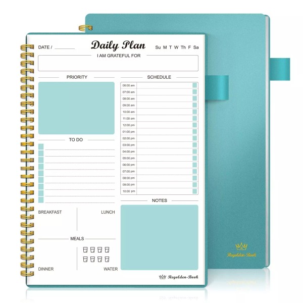Regolden-Book Daily Planner Undated, To Do List Notebook with Hourly Schedule Calendars Mea...