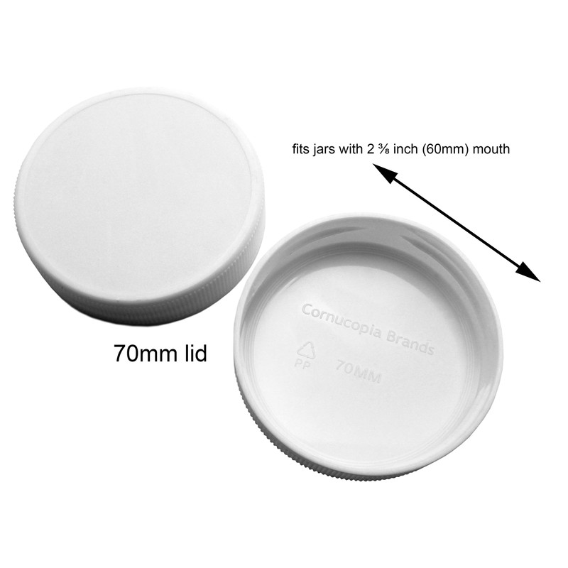 - WHITE PLASTIC: Save your canning lids for actual canning, and use these lids for their everyday convenience; store leftovers, package gift cookie mixes, etc.