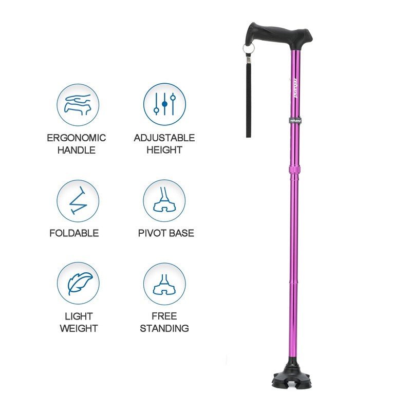 REHAND Walking Cane for Men & Women - Foldable, Adjustable, Lightweight, Self Standing Pivot Walking Cane, Soft Handle Grip, with Travel Bag, Walking Sticks for Seniors & Adults (Purple)