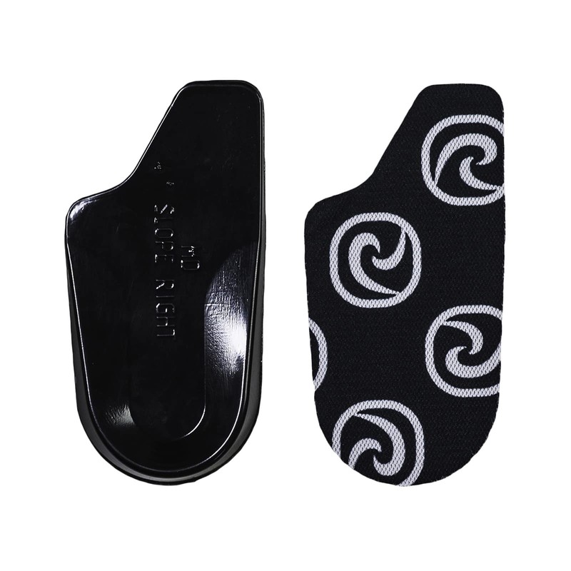 - Equivalent to a high-resistance shoe insert to compensate for heel-related problems