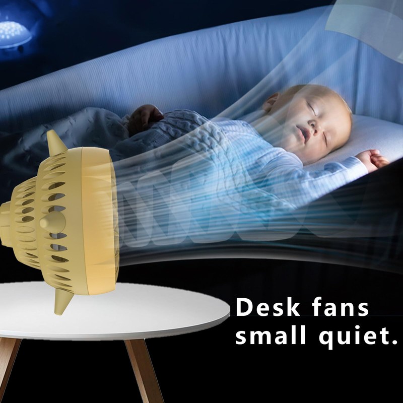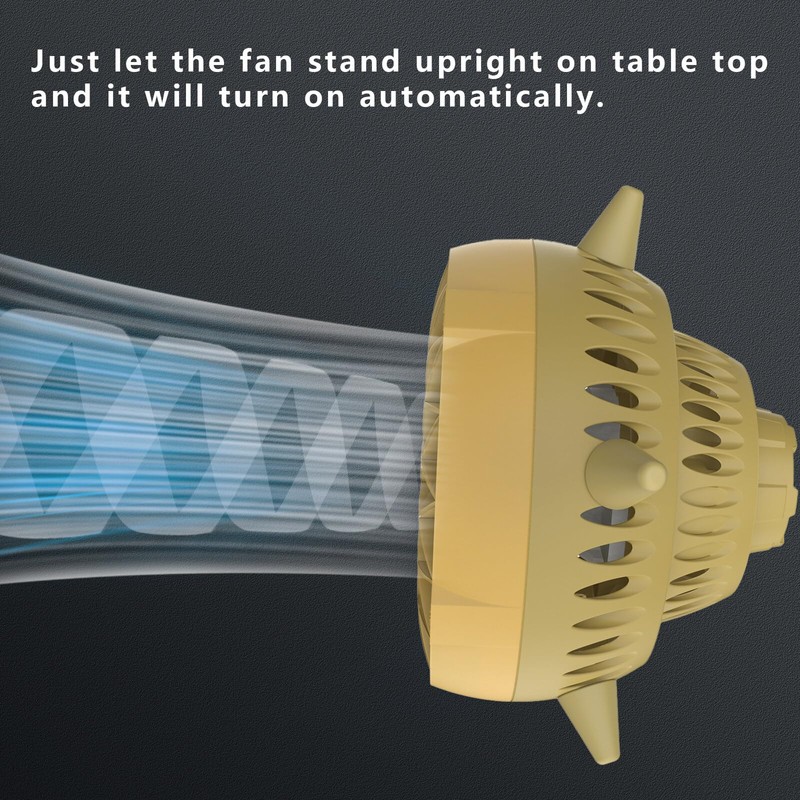 - 【Smart Displacement Sensor】Our desk fan with smart sensor can achieve true no-button operation. Just let the small fan stand upright on the table top and it will turn on automatically, then turn the fan body to change the wind mode. Small tabs on the rim tell you the working gear.