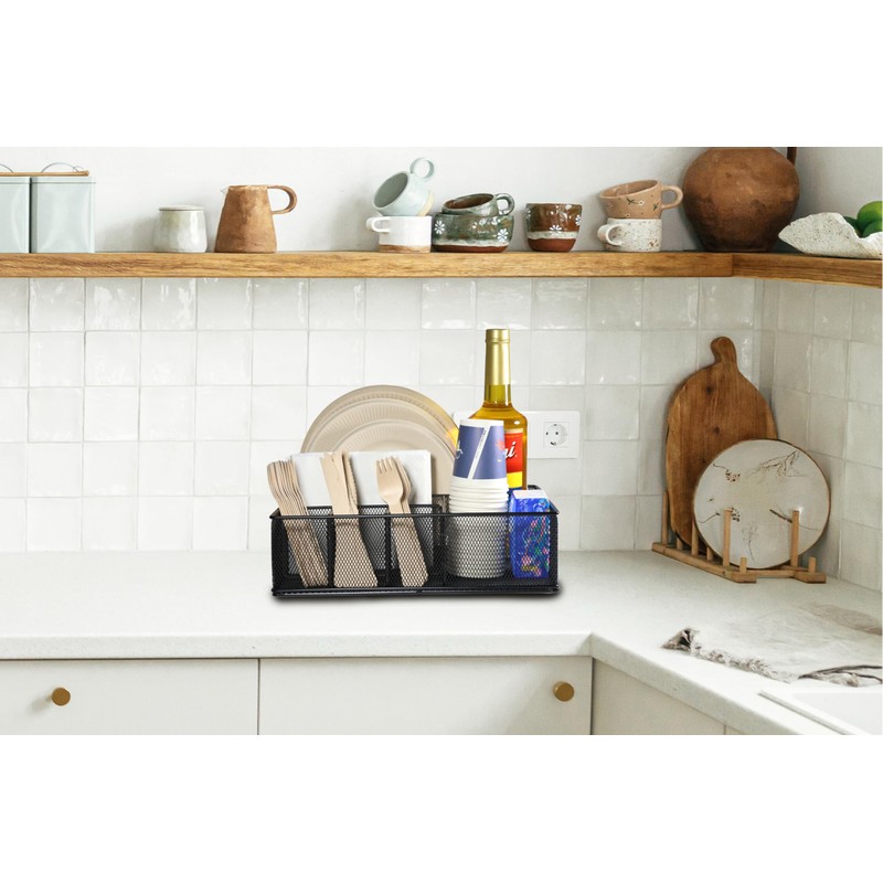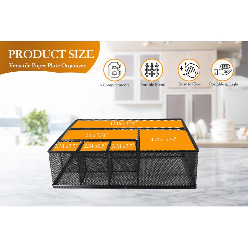 - METAL PAPER PLATE HOLDER - This all-in-one metal paper plate organizer, with its six compartments for organized storage, efficient and time-saving sorting capabilities, durable and stylish design, is a formidable assistant in kitchen organization, keeping cutlery and dishes neatly arranged and making kitchen life more enjoyable and hassle-free.
