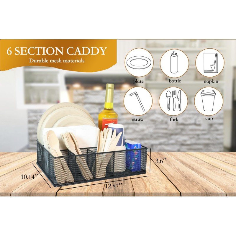 - 6 in 1 UTENSIL HOLDER- This versatile 6 compartment paper plate organizer seamlessly accommodates plates, cups, spoons, forks, knives, napkins, and more, ensuring a clutter-free kitchen space with efficient organization and easy access to all your dining essentials.