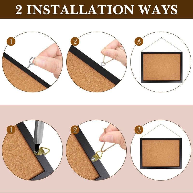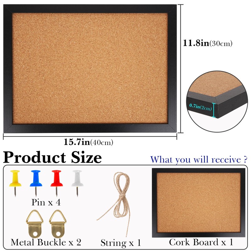 - Suitable Size:15.7"X 11.8" (40cm X 30cm)Cork Board, Comes with 2 screws, 2 eye Bolts, 5 cork nails