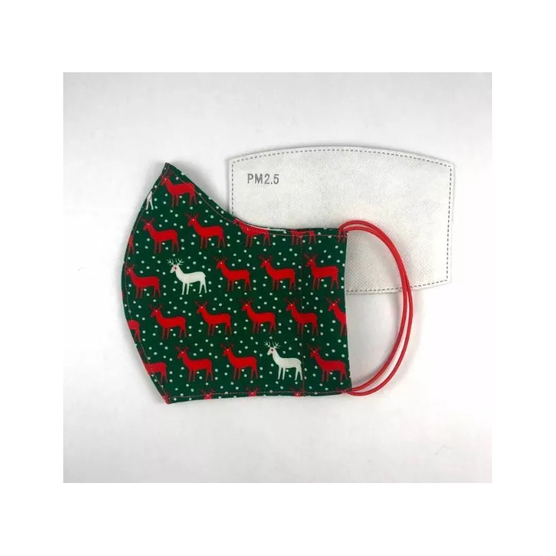 Reindeer Christmas Face Mask - Red / Green- Double Layer w/ PM 2.5 Carbon Filter
