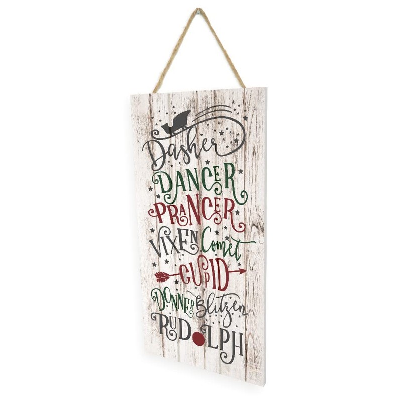 Reindeer Names Wooden Plank Hanging Wall Decor Sign Whitewash Wood Style 5x10