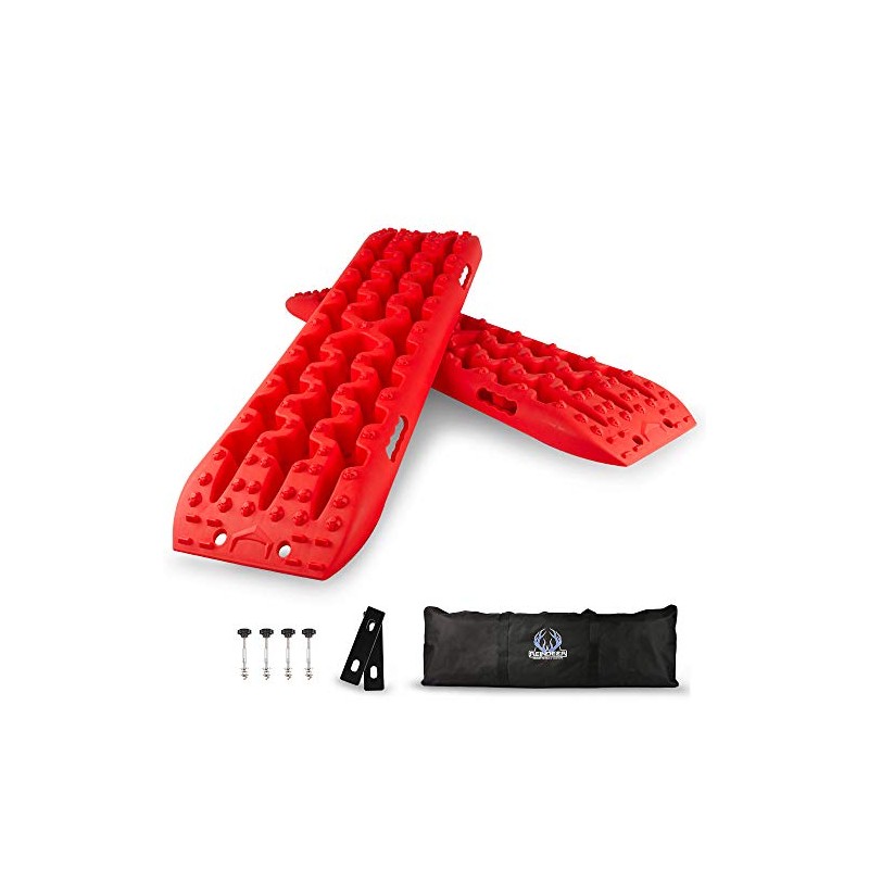 REINDEER Recovery Traction Tracks Mat for 4X4 Offroad Sand Snow Mud Track Tire Ladder with Bag with Mounting Pins (Set of 2) Red 4WD