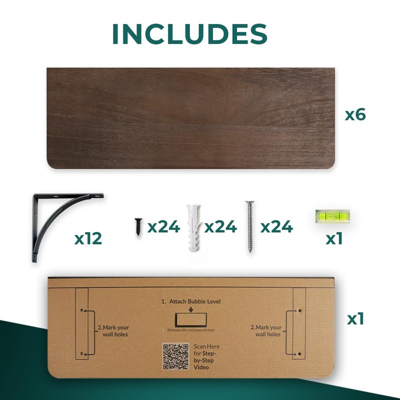 Reinforced Steel Bracket Dark Brown Shelves for Wall - Easy to Install, Template and Video Included - Over The Toilet Storage, Bathroom Wall Shelf