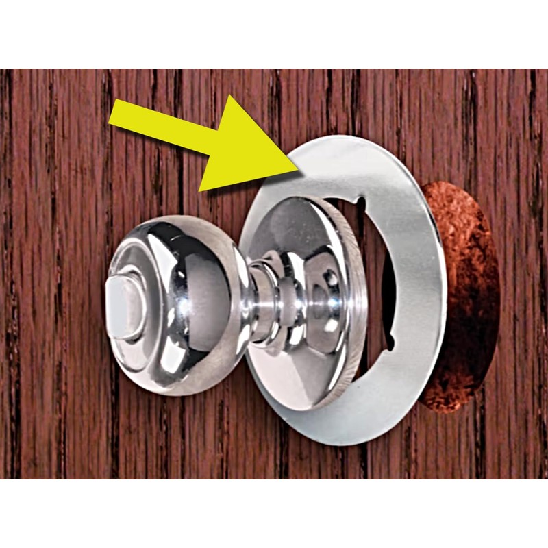 Scar Cover Plate Manufactured with durable material Fits under existing lockset to cover up the damaged door. Fits Most Standard Door Knobs: 2-1/8" inside diameter, 3-1/2" outside diameter, fits most standard door handles/lever locks and latches.