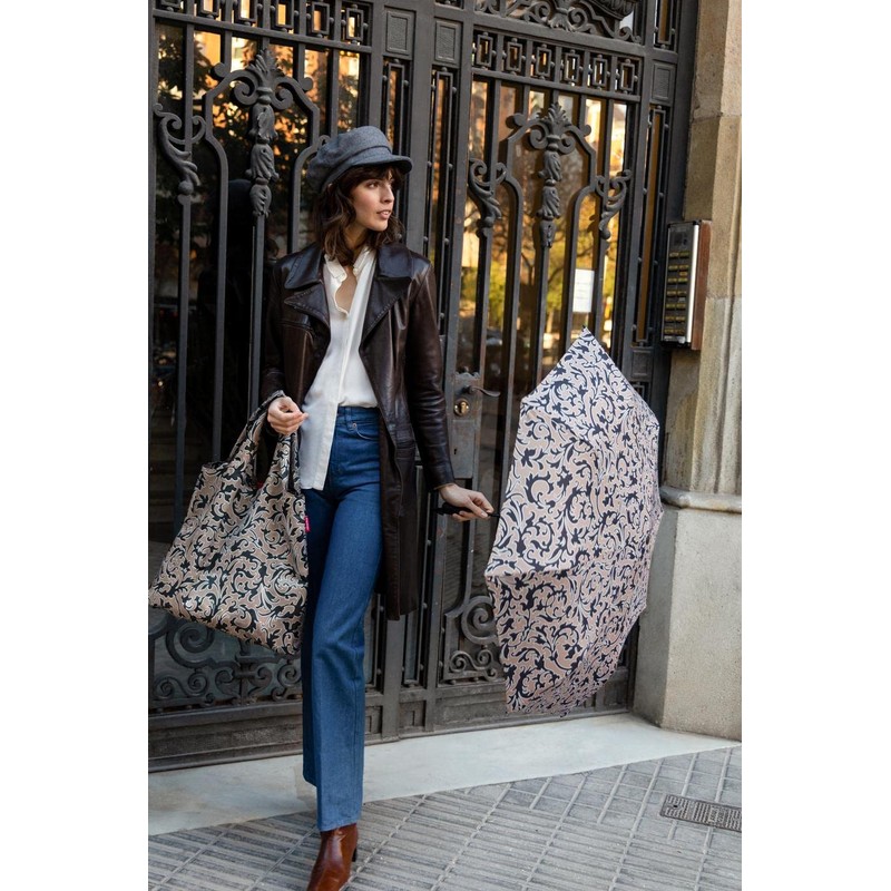 reisenthel Mini Maxi Shopper, Foldable Reusable Shopping Tote with Elastic Band, Baroque Marble
