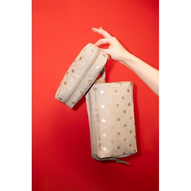 reisenthel Multicase Colourful and Modern Design Multi-Use Case Ideal for Cosmetics, School or Work Supplies, Metallic Dots Coffee