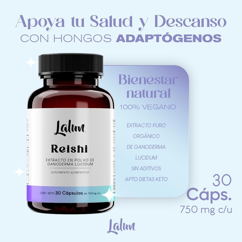 Reishi | Extracto Orgánico | Hongo Adaptogeno | Promueve el Descanso | Ayuda a Evitar el Insomnio | Equilibra el estrés mental y físico | 100% puro - 1 diaria | 30 Cápsulas de 750 mg