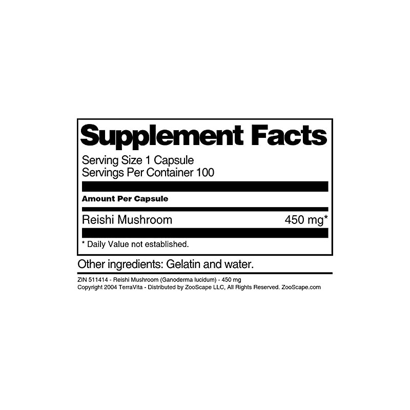 • Reishi Mushroom (Ganoderma lucidum) - 450 mg (100 capsules, ZIN: 511414)