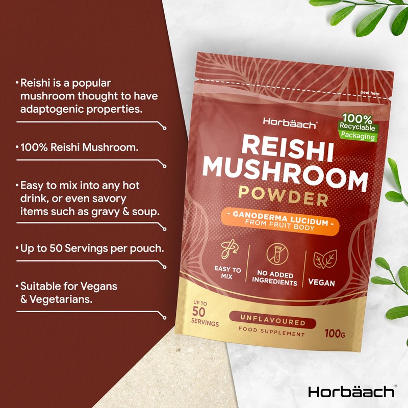 - SUITABLE FOR: Horbaach Reishi Mushroom powder is suitable for vegetarians and vegans and is free from artificial colours, flavours, or preservatives. It's the perfect formula for adult men and women at the best value.