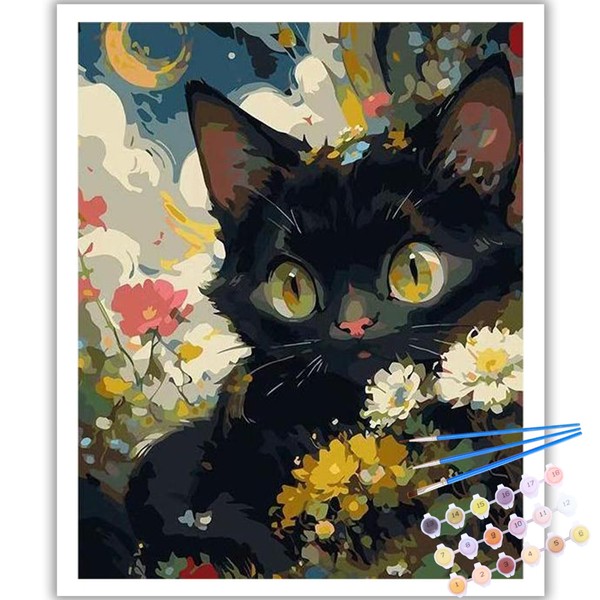 Reivworl Cat Paint by Numbers Kit for Adults, Cat Adults Paint by Number Kits on Canvas, DIY Acrylic Painting by Numbers for Gifts and Home Decor 16x20Inch
