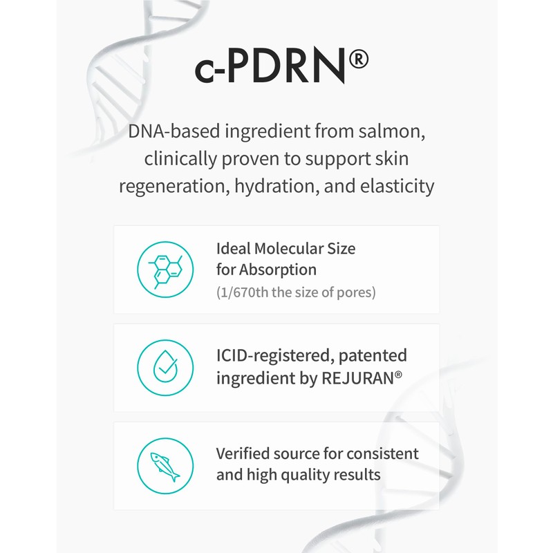 - OIL-FREE, PROPRIETARY FORMULA: c-PDRN is a patented marine-based growth factor that dramatically improves skin elasticity and firmness. Hyaluronic Acid moisturizes skin to smooth texture and even skin tone. Allium Cepa Extract, Allantoin, and Niacinamide are natural ingredients to soothe and brighten skin.