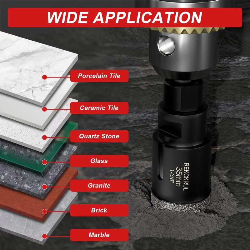 • Versatile Drilling Power – Designed for dry or wet drilling in porcelain, ceramic, granite, marble, brick, concrete, and masonry. Built for plumbing, AC installations, shower fixtures, and tile projects