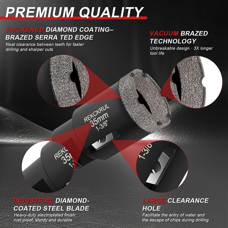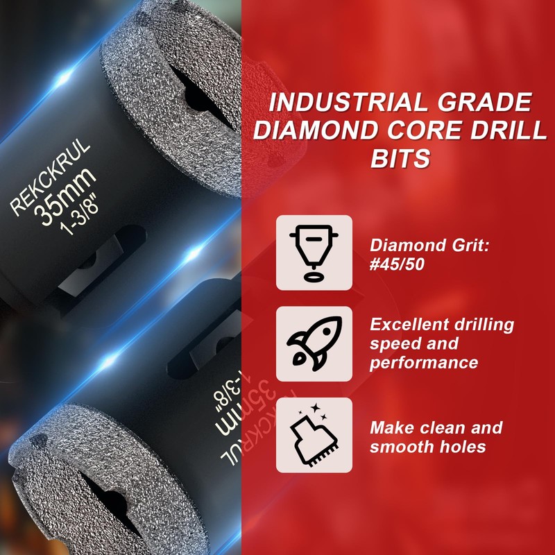 Upgrade your toolkit with REKCKRUL's 1-3/8 Inch Dry Diamond Core Drill Bits – engineered for precision and longevity.