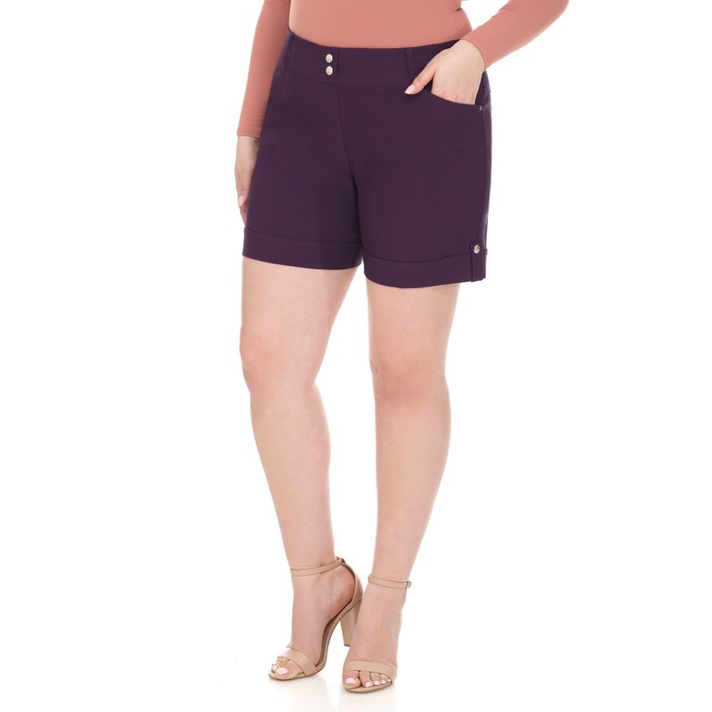 Rekucci Curvy Woman Plus Size Slimming 6 Inch Short with Cuff (20W, Deep Plum)