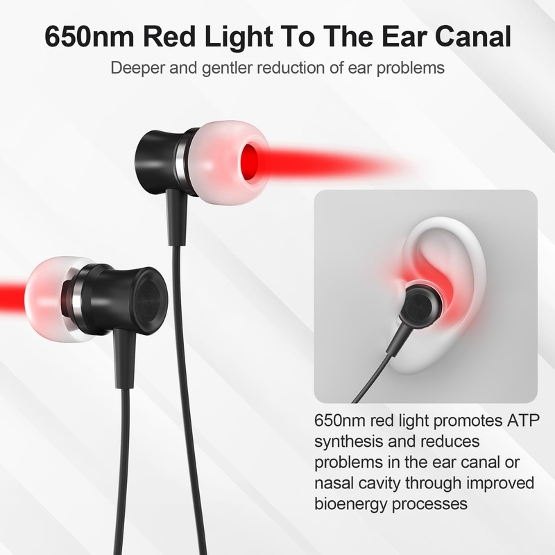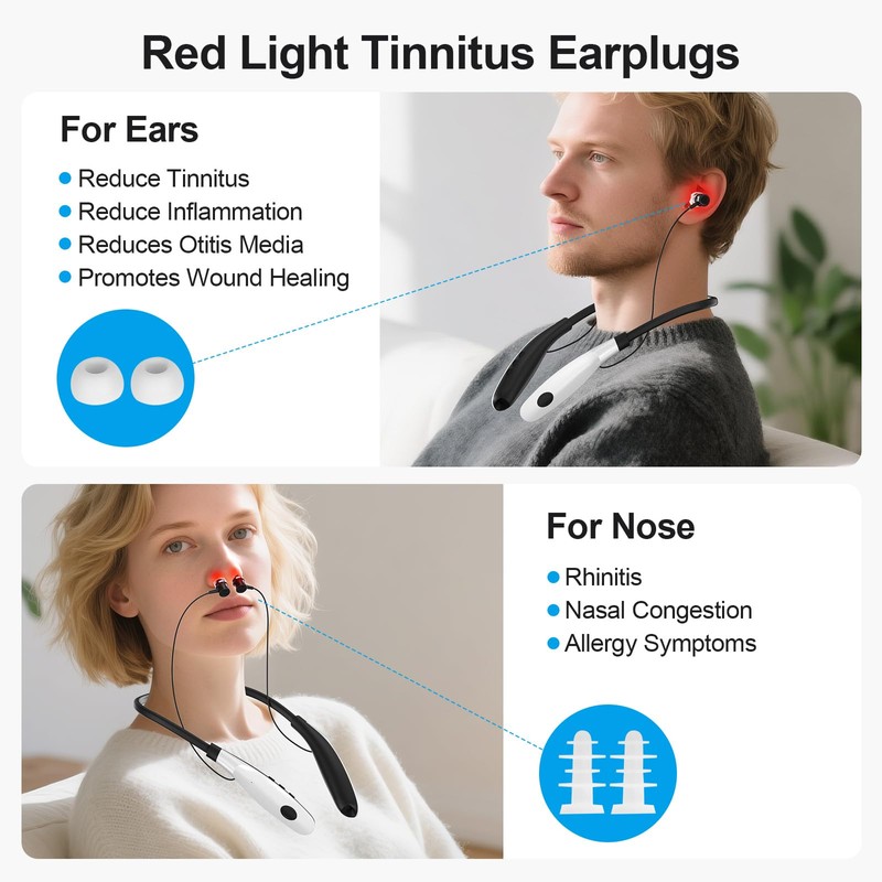 Relassy Tinnitus Infrarot Ohrstöpsel, 2 in 1 Rotlicht Tinnitus Kopfhörer, Tinnitus Gerät mit 650nm Rotlicht für Reduziert Tinnitus-Schmerzen, Infrarot Kopfhörer Set für Nase und Ohren