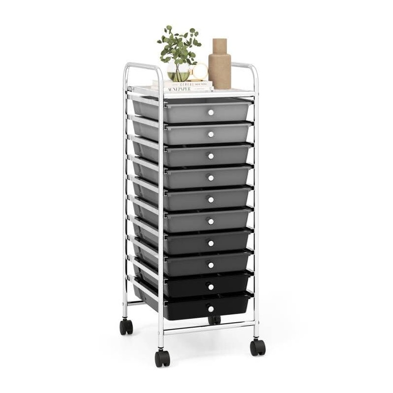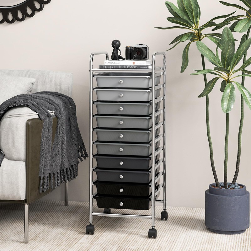 RELAX4LIFE Craft Organizers and Storage Cart - Rolling Cart with 10 Drawers, Lockable Casters for Tools, Trolley Cart with Wheels, Utility Cart for School, Home Office, Craft Cart (Gradient Black)