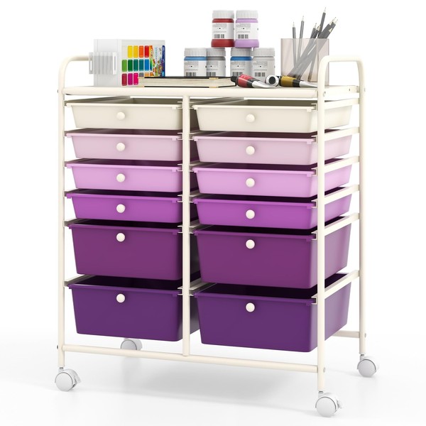 RELAX4LIFE Craft Organizers and Storage Cart - Rolling Cart with 12 Drawers, Wheels, Mobile Rolling Utility Cart for School, Office, Beauty Salon, Art Supply Storage Organizer (Gradient Purple)