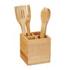 Relaxdays 10032107 Cutlery Stand 4 Compartments Bamboo Kitchen Utensil Holder for Cutlery Pens H x W x D 14.5 x 13.5 cm Natural