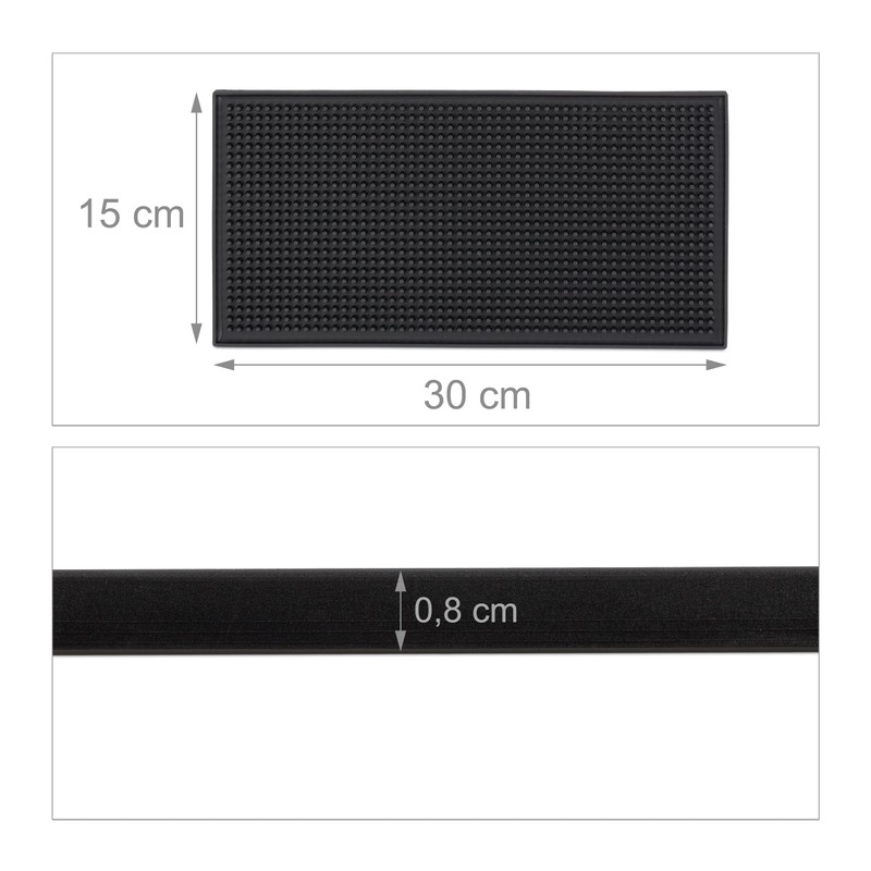 Relaxdays Bar Mat Set of 2 with Nubs, 30 x 15 cm, PVC Drying Mat, Dish Drying for Bar and Sink, Black