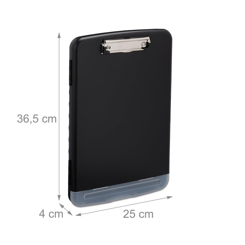 Relaxdays Clipboard with Storage Compartment, Set of 2, Clip H x D: 36.5 x 25 x 4 cm, A4 Clipboard Folder, Plastic, Black