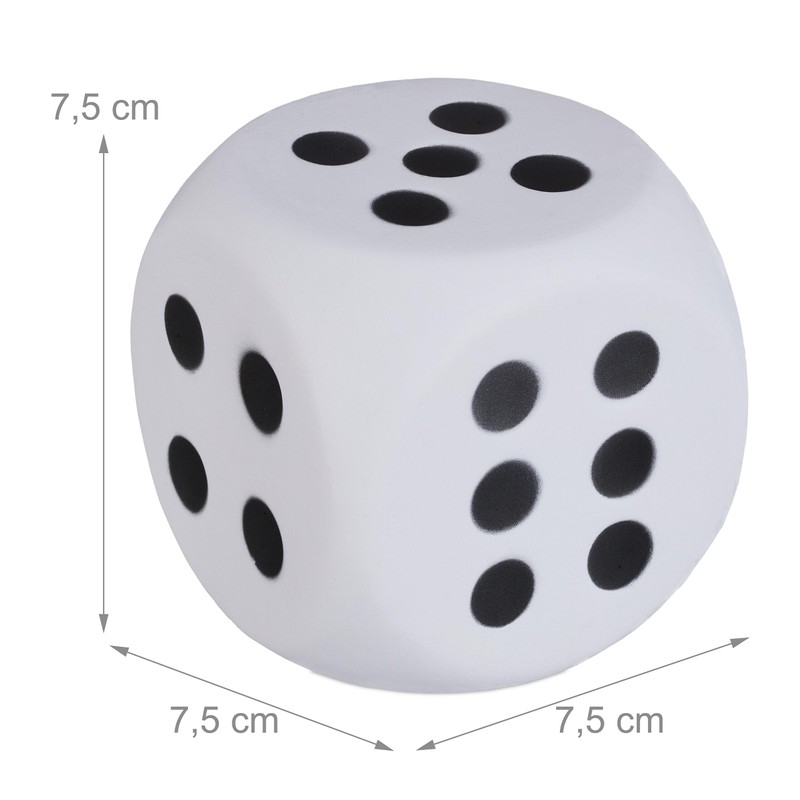 - Details: 6 white foam cubes - easy to read eye numbers 1 to 6 - dimensions (H x W x D): 7.5 x 7.5 x 7.5 cm