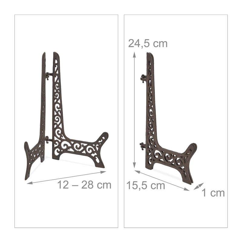 Relaxdays Plate Stand, Antique Design, Stand, Books, Compartments & Pictures, Table Easel, HBT: Approx. 24.5 x 17 x 1.5 cm, Brown