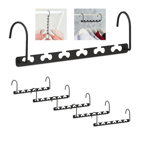Relaxdays Space-saving hangers, set of 6, for 12 hangers, horizontal, vertical, space-saving hangers, 26 cm, metal, black