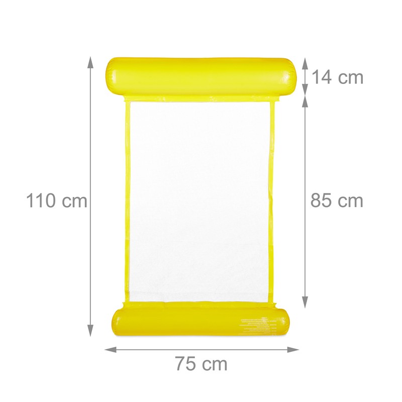 Relaxdays Swimming Hammock, Pool Air Mattress with Net, 100 kg, Adult Inflatable Water Hammock, Yellow
