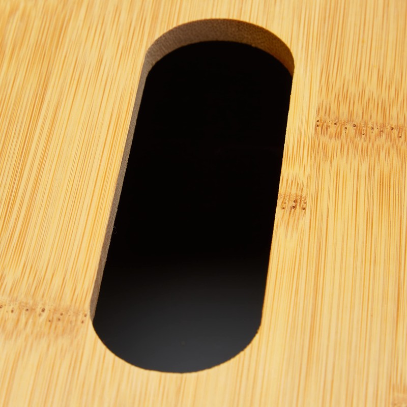 - Material: The box is made of grey plastic - With lid made of natural bamboo
