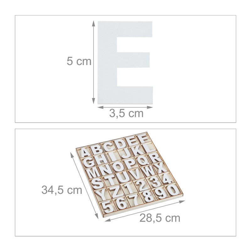 Relaxdays Wooden Letters & Wooden Numbers, 144-Piece Set, Uppercase Letters A-Z, Numbers 0-9, 5 cm, Wooden Decoration for Crafts, White