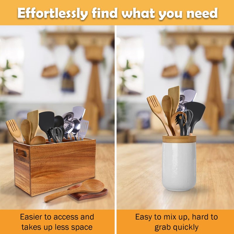 • Durable & Easy to Clean: The acacia wood construction is not only durable but also easy to wipe clean, keeping your utensil organizer for countertop looking fresh daily.