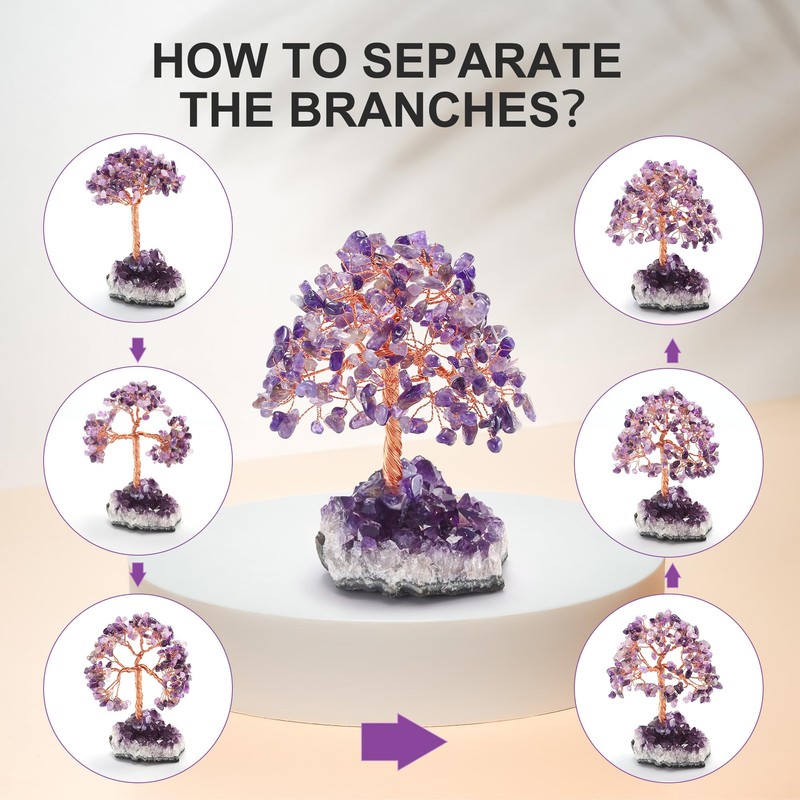 - Rooted in traditional wealth-attraction symbolism, this crystal money tree complements mindfulness desk accessories collections. Its compact size (300g) allows strategic placement - position near workstations to enhance focus or in living areas as purple home decor with purpose.