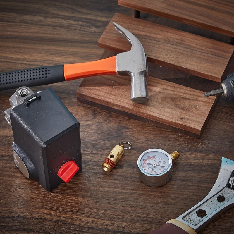 - Package Includes: an air compressor pressure switch, an air pressure gauge and a relief valve