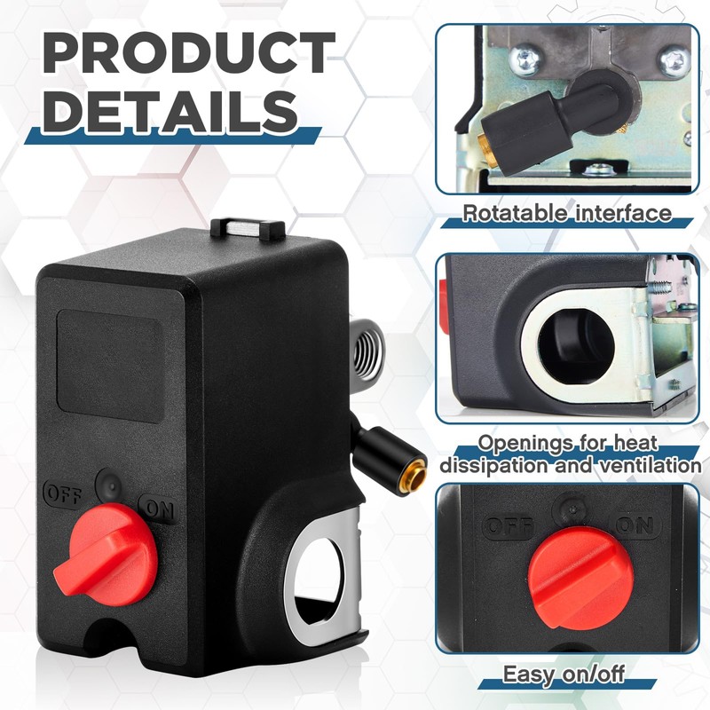 - Easy Installation: with red switch, air compressor can be easily controlled; You can customize the working range of the pressure switch based on your specific needs