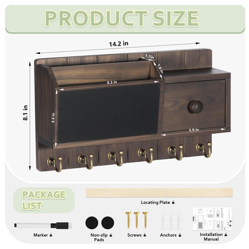 • Easy Reminder: Key and mail holder features a black board and a marker, ideal for leaving reminders and notes; an easy way to share important messages, like “Don't forget your keys!”; it also can be easily wiped with the marker eraser; nice organization while enhancing home decor