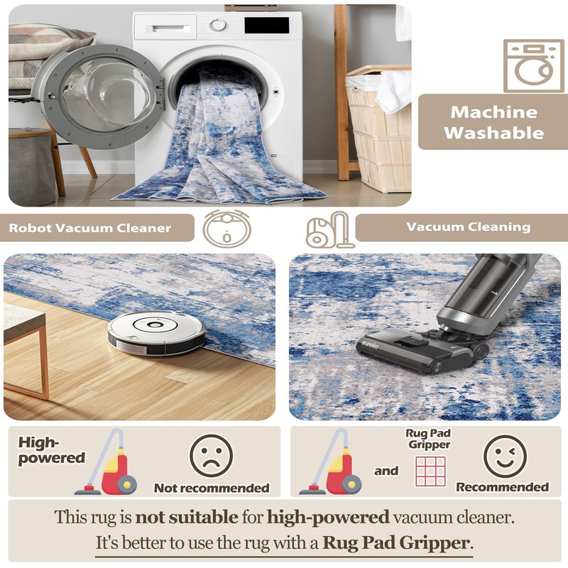 - Machine Washable Non-slip Rug: this modern area rug abstract is crafted with reinforced edges and low-pile design that won't trap dirt. the surface is water-repellent which allows for easy cleanup when beverages are accidentally spilled, as the liquid is less likely to seep in. Simply use a towel to promptly wipe away any spills. And it's also machine washable. Use cold water and avoid bleach to maintain the rug's quality. The non-slip backing keeps the rug in place.
