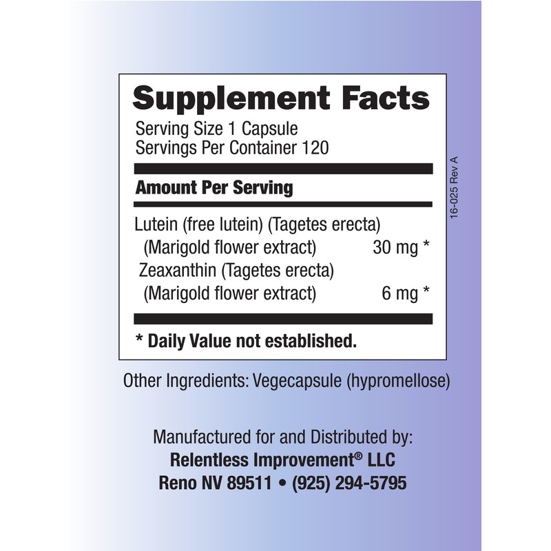 Relentless Improvement Lutein Zeaxanthin 120 vegi-Capsules Natural Source